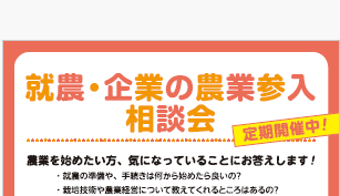 就農希望者のニーズに対応し、数日間の農業視察・体験研修から就農に向けて本格的に栽培技術等を学ぶ実践的な研修まで実施しています。