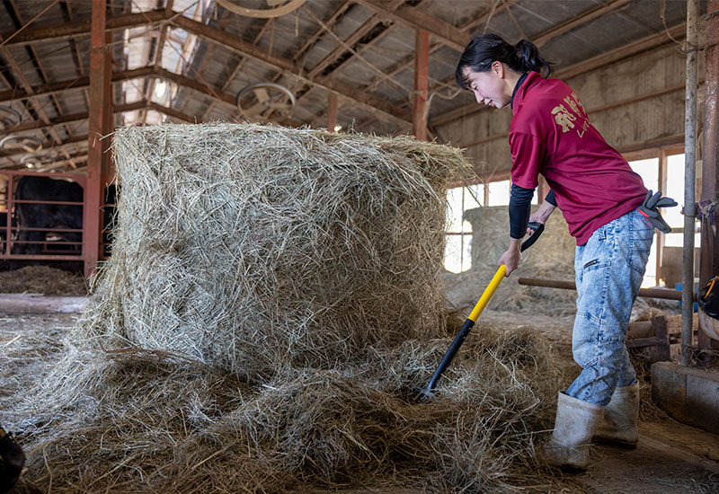 平日は朝4時と16時に飼料を与え、その他の時間を観察や堆肥処理、飼料の準備に当てています。朝が早い分、仕事は早めに終わるので、夜の時間を楽しんだり、時には家族に牛の世話を頼んで、友人と平日のランチに出かけたりしています。