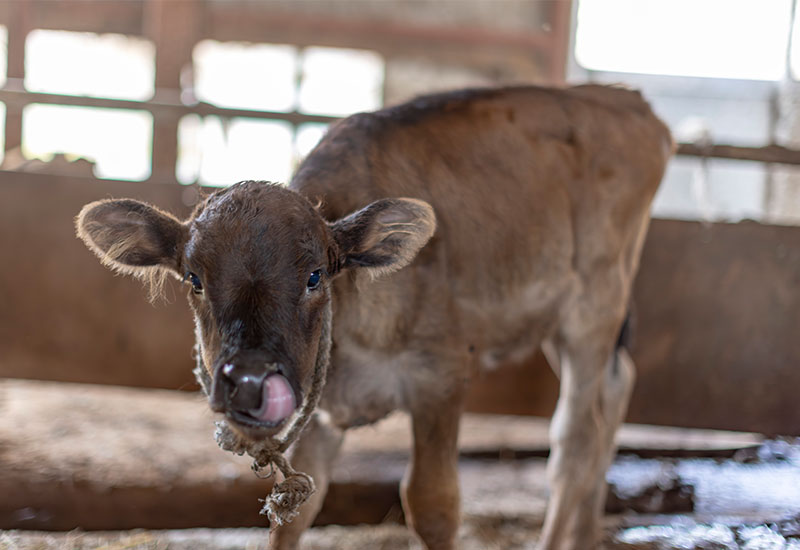 生まれた子牛は、生後8~9ヶ月まで育てて出荷しますが、子牛はとてもデリケートで病気にかかりやすいため、ここでも毎日の観察が大切になります。生まれた後は、子牛にできるだけ語りかけたり撫でたりして、環境に慣れてもらえるよう手をかけて世話をしています。その際に健康状態を注意深く観察し、ミルクの飲む量や体温などの体調の変化を少しでも見つけたら、すぐに獣医へ相談するようにしています。
