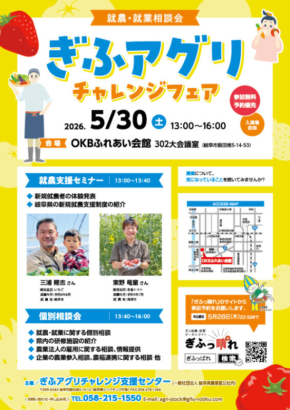 ぎふアグリチャレンジ支援センターが「ぎふアグリチャレンジフェア」を開催します!
